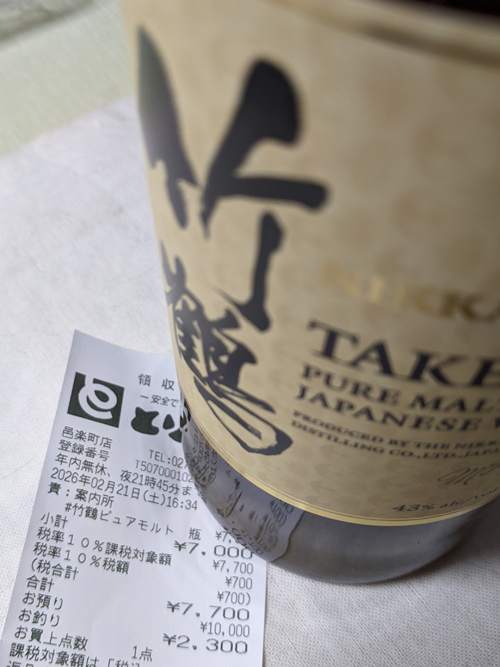 昨日、近所のスーパーで竹鶴が売ってたので買ってきました。