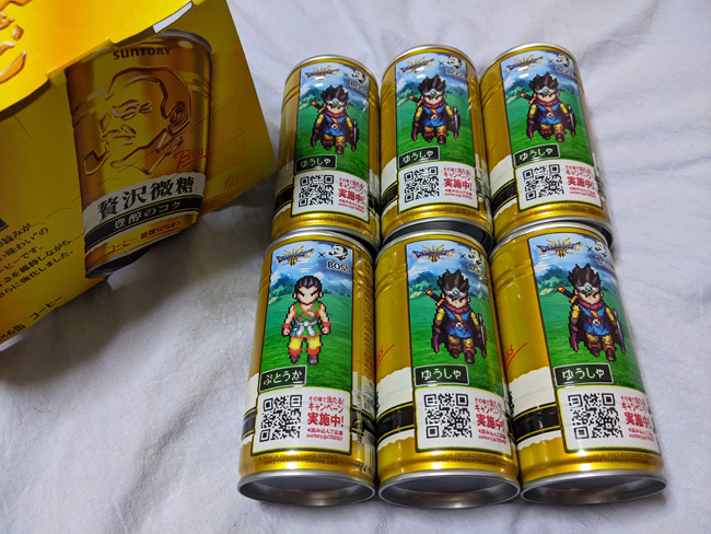 BOSS×DQ3コラボの6缶パックで再トライ。
