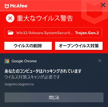 うぎゃー、デスクトップ上に偽広告が出たー。